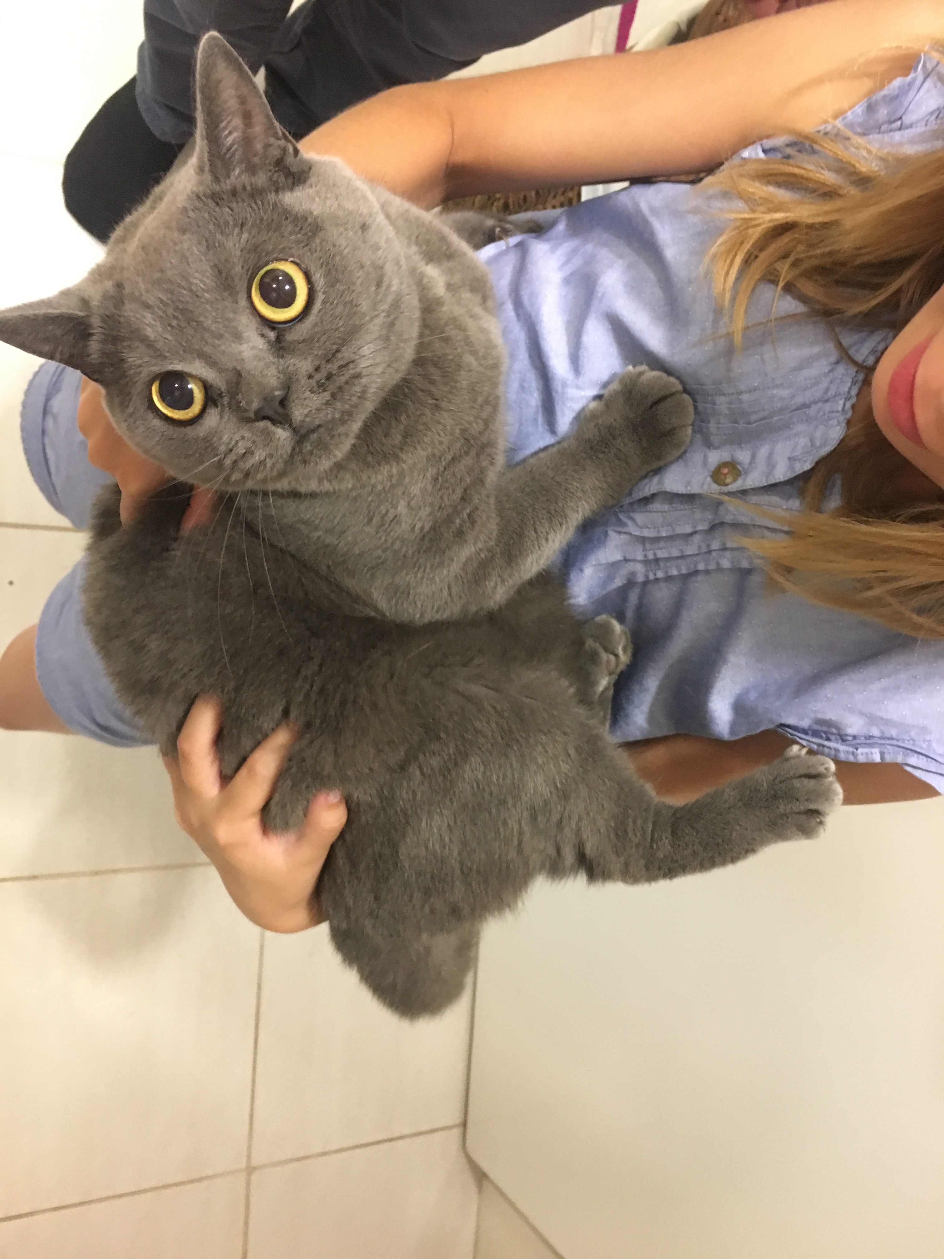 “Bene. Mi risulta che il suo gatto sia un British Shorthair di colore blu.”